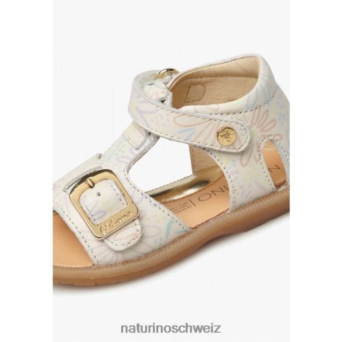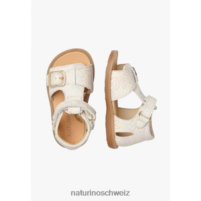 Naturino Quarz Ledersandalen mit Blumendruck Kinder Milch 66HJ549
